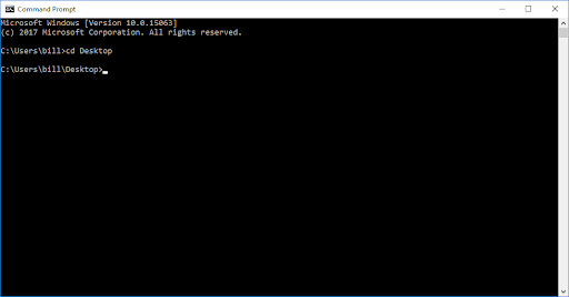 4. Type exactly “cd Desktop”, then hit the “Enter” key.